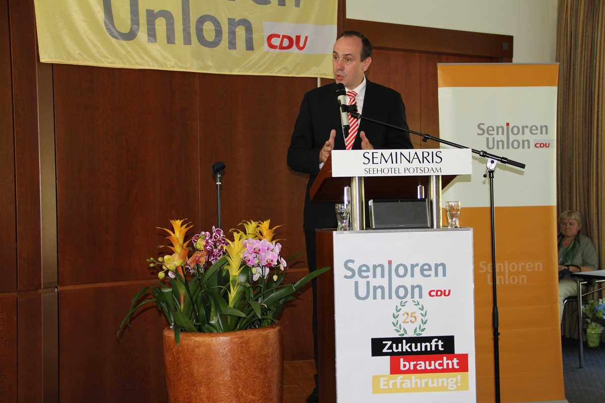 Der ehem. Landesvorsitzende der CDU Ingo Senftleben bei seiner Rede zum Landesdelegiertentag der Senioren Union Brandenburg 2018